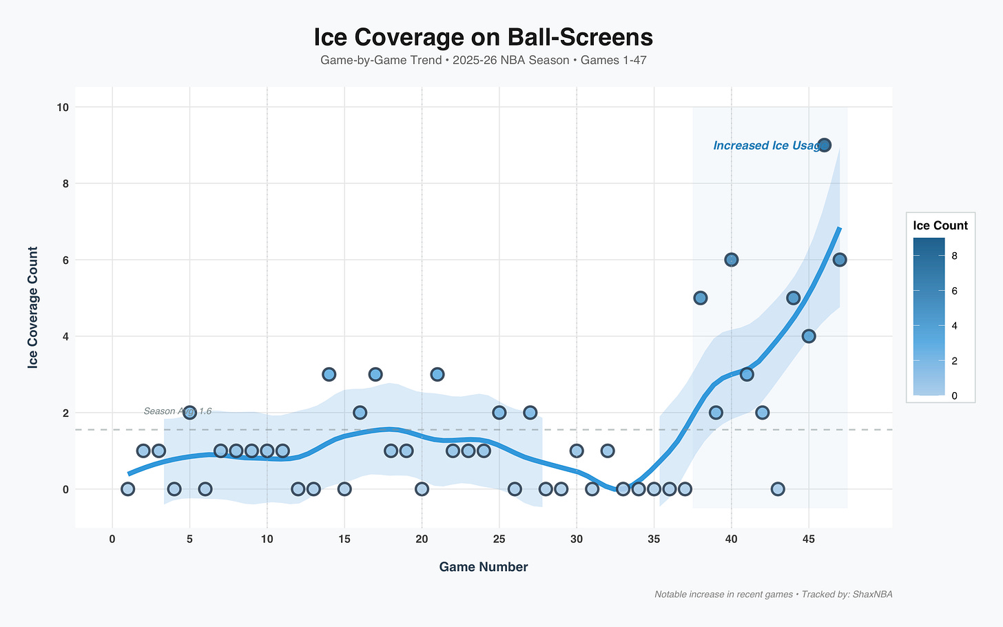 Not only are the Knicks using this coverage more frequently, it’s also been highly effective. Against Philadelphia, opponents scored just 0.44 points per action across nine possessions. Sacramento managed 0.33 PPA in six plays, Portland 0.40 PPA in six plays, and the Clippers 0.71 PPA in five plays. These are elite and telling numbers.
