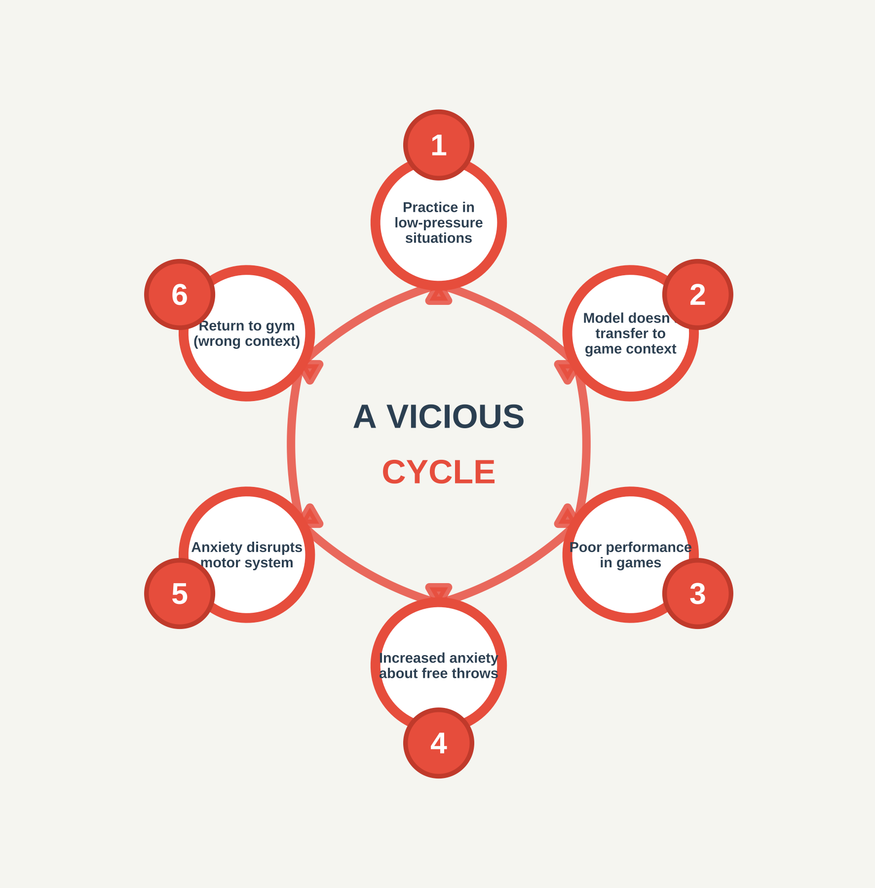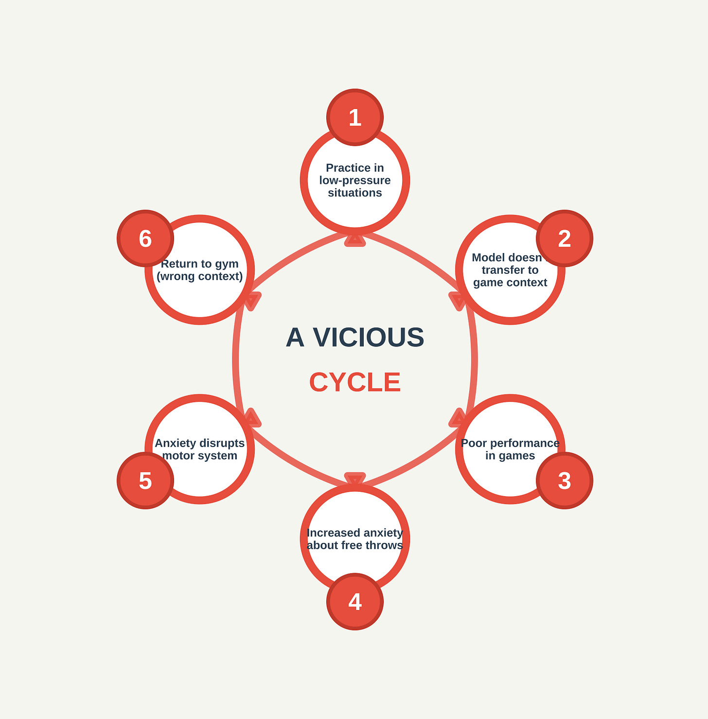 For elite free throw shooters like Steph Curry or Steve Nash, this may not be a problem because their internal model is so robust it can generalize across contexts. But for someone like Robinson who likely hasn’t built a stable model yet, the context mismatch can be crippling.