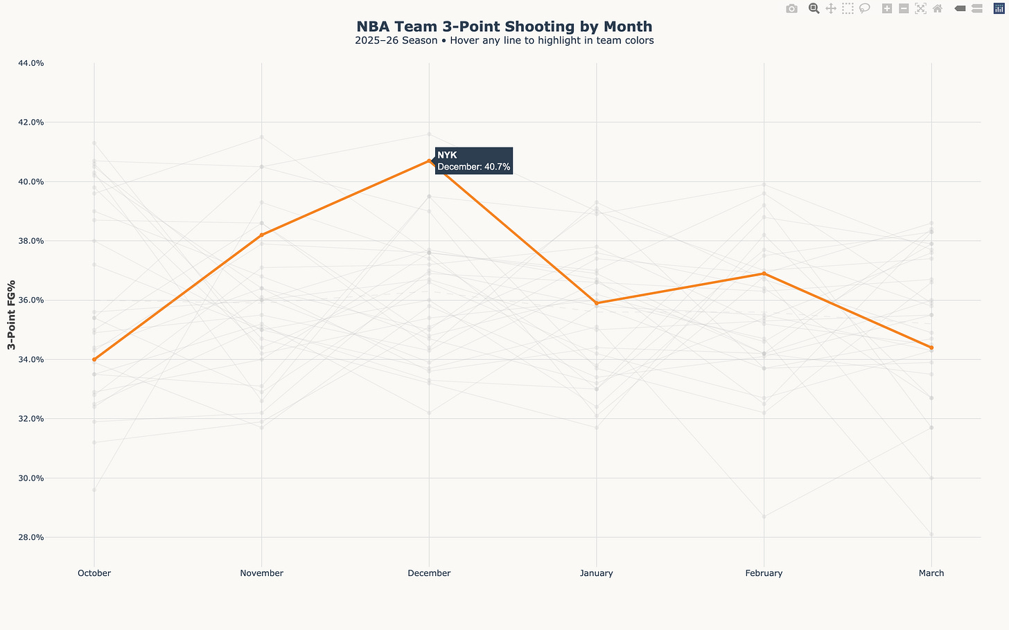 Three-point percentage is one of the most volatile stats in basketball, it swings wildly from month to month for every team in the league. While I do not have similar shot quality data for other teams, we can conclude that no team shoots it consistently all season, and the Knicks are no different.